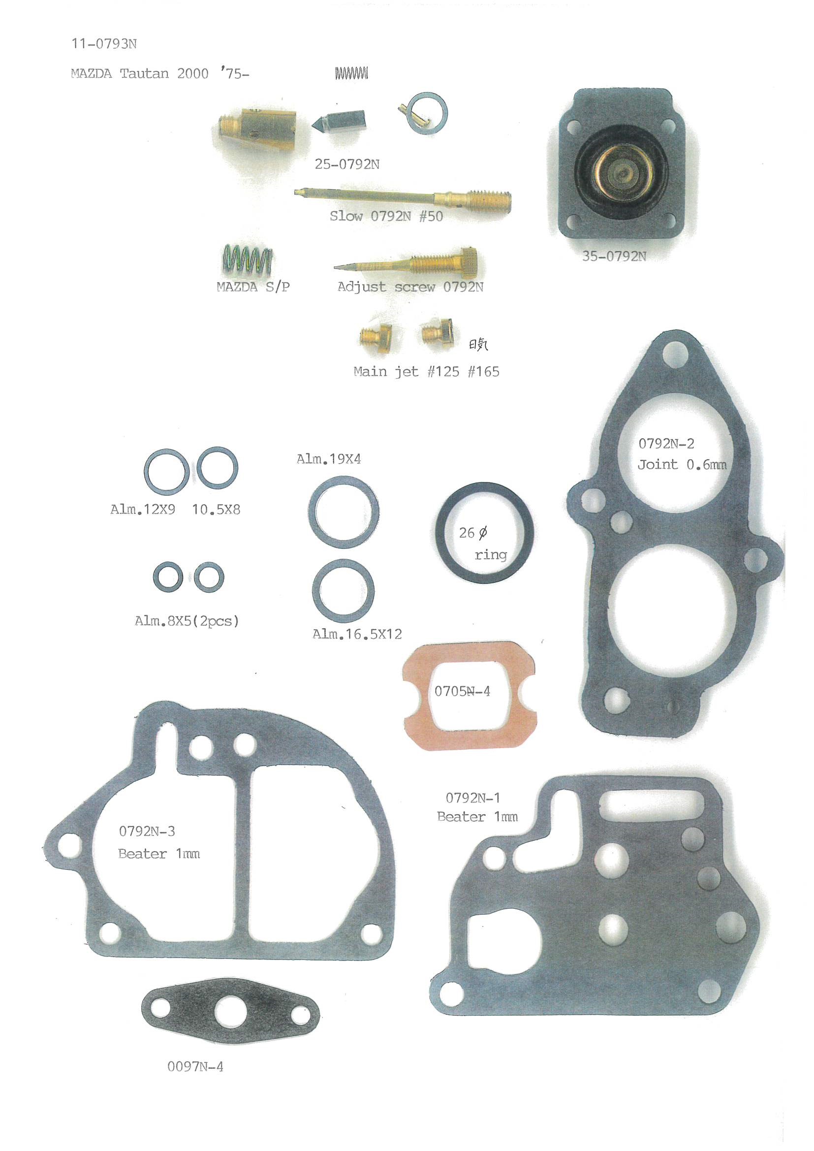 4輪 Carburetor Repair kit MAZDA 『 11-0793N』Taitan 2000 1975- 0552-23-54O V9 Made in Japan 旧車キャブレターリペアキット 安心の日本製ナプコキャブレターリペアキット