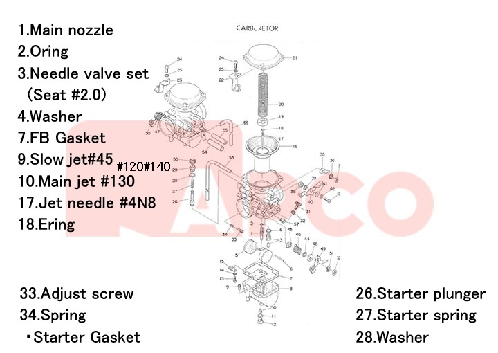キャブレターOEM番号 CARBURETOR NO